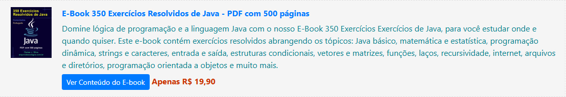 Desafios, Exercícios e Algoritmos Resolvidos de Java |